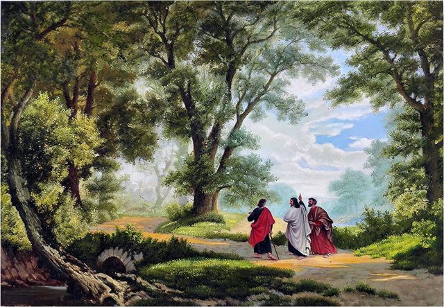One time, Jesus appeared to the disciples on their way from Jerusalem to Emmaus (Luke 24:1-12). The Emmaus trail is about twenty kilometers long (1). While some of the disciples discussed the recent happenings in Jerusalem, an unknown person joined them who, upon listening to their conversation, proceeded to highlight places in the Old Testament where texts pertaining the suffering Messiah could be found, along with the prophecy that he will rise from the dead. The disciples felt their hearts burning within them, and implored this mysterious stranger to join them as the sun was setting. At the breaking of the bread, they recognized him as Jesus, but he vanished from their sight. They immediately ran back to Jerusalem to tell the others that Jesus had appeared to them. As soon as they reached Jerusalem and told the others that they had seen Jesus, Jesus re-appeared to them again with the same words as he had appeared to them before, “Peace be with you!” He stretched out his wounded hands to reassure the disciples that it was really him. They needed this confirmation repeatedly, since what they witnessed was entirely out of their human and ordinary range of experience.